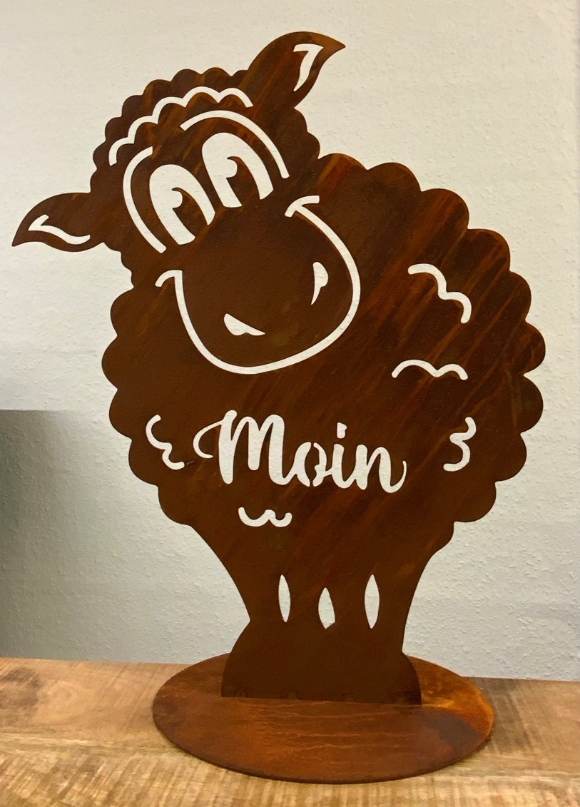 Schaf "Moin" auf Platte